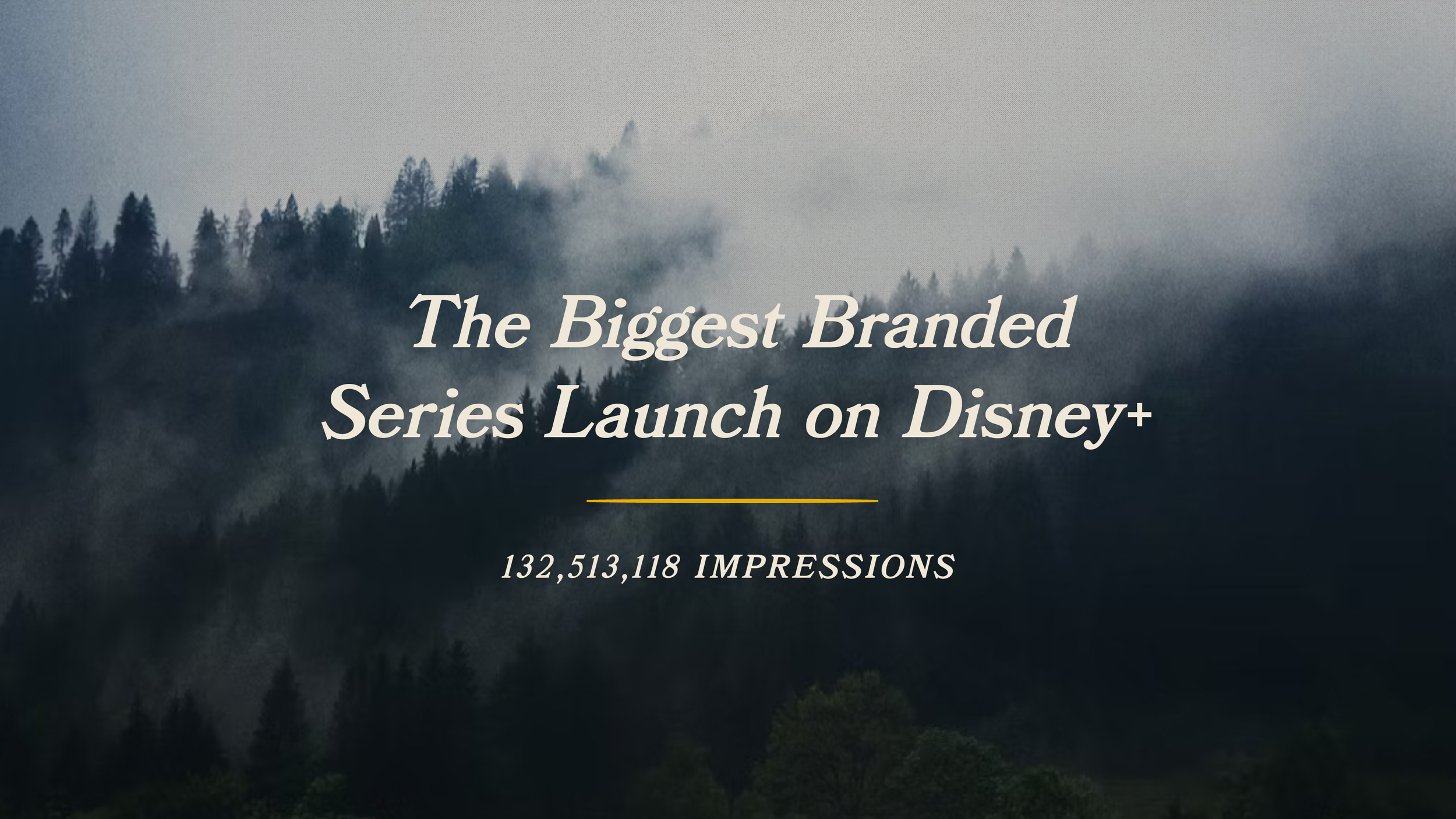 For a case study video showcasing the campaign “Return to the Wild” for Destination Canada. Initiative created a series on Disney+ to showcase remote Canadian locations that had yet to be shared on social media. The film was given a red carpet premiere and drove global interest and engagement, making it Disney+’s largest branded series launch.
